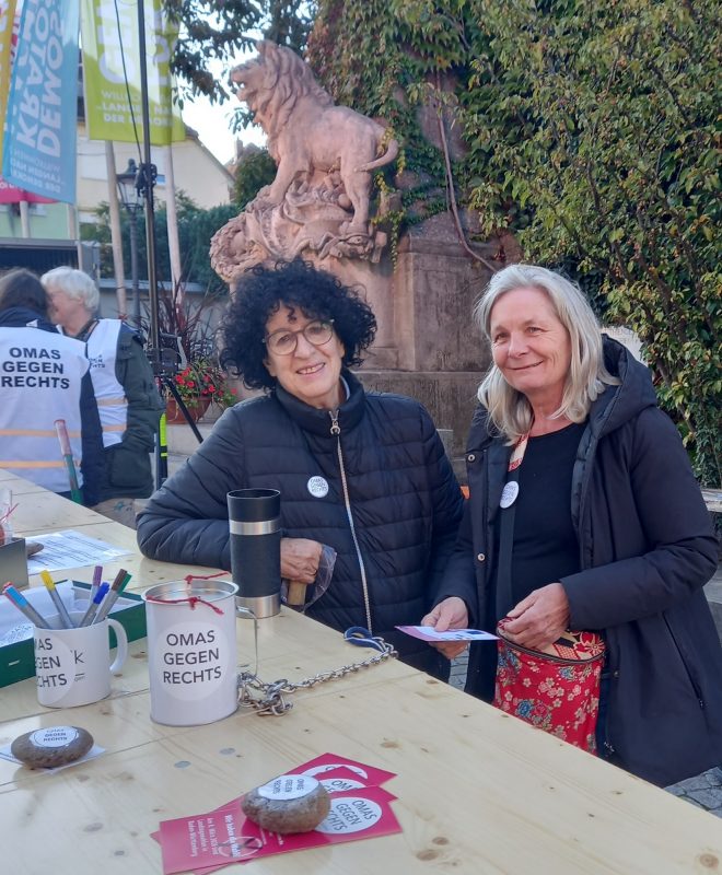 Die Badische Zeitung meldete am vergangenen Sonntag, dass es eine Gruppe der Omas gegen Rechts in Waldshut-Tiengen gibt. Die Doppelstadt an der Schweizer Grenze hat rund 25.000 Einwohnerinnen und Einwohnern. Die Omas hier wollen sich besonders für Vielfalt, Toleranz und Demokratie einsetzen.