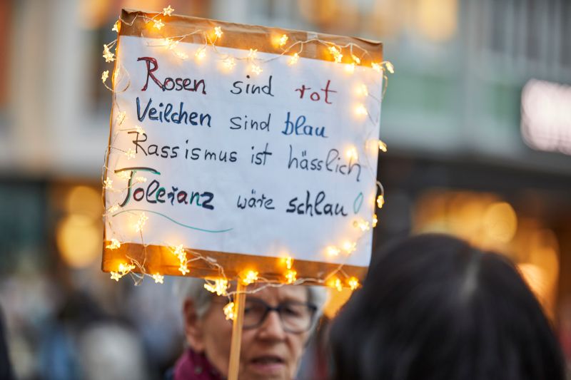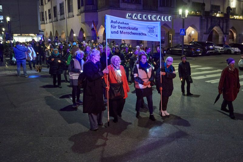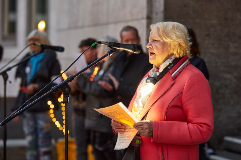 „Wir sind heute hier, um ein Zeichen gegen Ausgrenzung, gegen Hass und gegen die schleichende Gleichgültigkeit zu setzen“, sagte Anna Ohnweiler, die Gründerin der Omas gegen Rechts in Deutschland, bei der Begrüßung in Stuttgart. „Jedes Licht steht für ein Versprechen: Das Versprechen, dass wir unsere Demokratie nicht als selbstverständlich hinnehmen, sondern dass wir bereit sind, für sie einzustehen.“