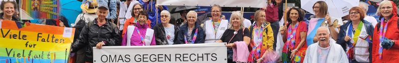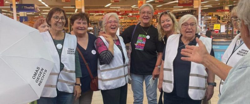 Auch in Schorndorf mischen sich neuerdings OMAS GEGEN RECHTS aktiv in die politische Debatte vor Ort ein. Als das Schorndorfer „Bündnis gegen Rechts“ am 29. Juli gegen einen so genannten „Bürgerdialog“ der AfD in der Künkelin-Halle demonstrierte, trat auch die neue OgR-Ortsgruppe Schorndorf erstmals öffentlich in Erscheinung. An diesem Tag hielten Mitglieder der Gruppe ihre erste öffentliche Rede und bezogen klar Stellung gegen rechte Ideologien, Rassismus und Frauenfeindlichkeit.