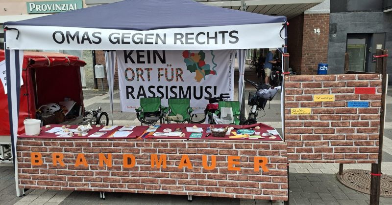 In Brühl haben die Omas sich aus Anlass des Kommunalwahlkampfes etwas Besonderes vorgenommen. Sie stellten am Samstag ihren Infotisch auf und bauten dazu eine „Brandmauer“. Mittels Papier und Stiften schrieben die Omas auf, was den Menschen, die an ihren Stand kamen, wichtig war. Sauber und gut lesbar wurden diese Gedanken dann an die Brandmauer geklebt. Zu lesen war dort dann u.a. „Geht wählen, aber demokratisch“, „Brandmauer halten, Demokratie bewahren“, „Mut zum Widerspruch“, „AfD-Verbot, jetzt“.„Am liebsten würde ich einfach euch wählen“, meinten sogar gleich mehrere Passanten am Stand der Omas.(b.)