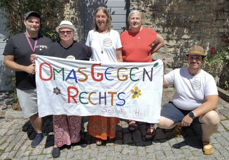 Zwischen 28 und 87 Jahre alt sind die 20 Mitglieder der Haller „Omas gegen Rechts“. Der größte Wunsch der Gründerin: dass ihr Einsatz überflüssig wird. Unter der Überschrift „Mit Keksen und Mut gegen Intoleranz“ veröffentlichte die Südwestpresse am 25. September 2025 ein großes Interview mit der Ortsgruppe Schwäbisch Hall. Für den 27. September luden die Omas zu einer Kaffeetafel an den Brunnen in der Gelbinger Gasse ein.