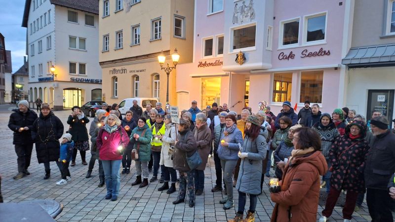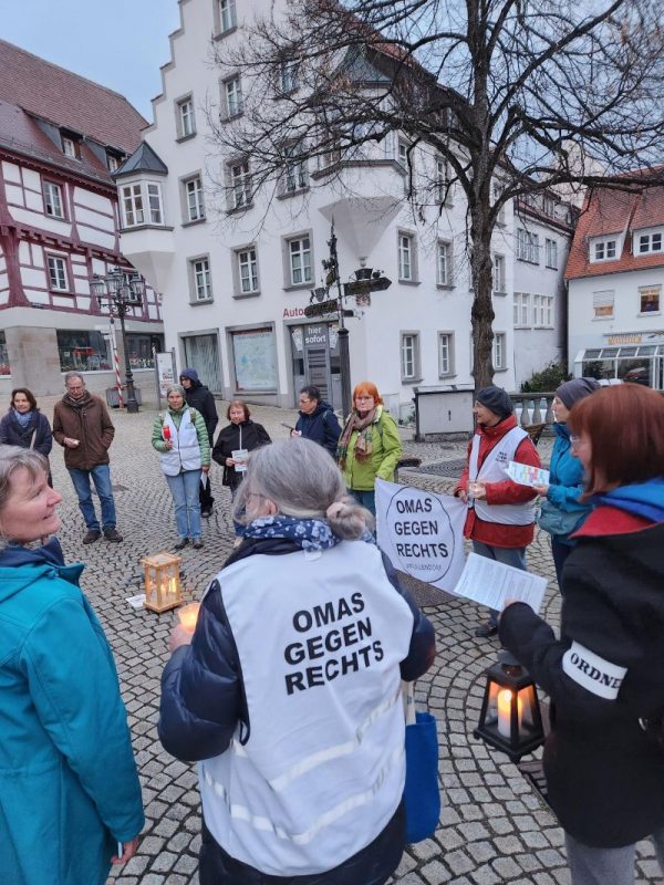 In Freudenstadt laden die „Omas gegen Rechts“ zu einer Lichterkette und einer Mahnwache auf den großen Platz vor dem Rathaus ein.