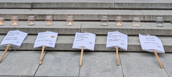 Etwa 120 Besucher*innen kommen zur Lichteraktion auf dem Vaihinger Marktplatz. Ein Liedermacher-Ehepaar unterstützt die Aktion musikalisch. Der Oberbürgermeister würdigt in einem Grußwort die Aktion und Arbeit der Omas.