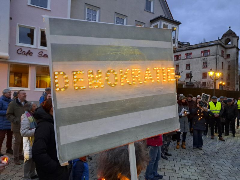 In Pfullendorf führen die „Omas gegen Rechts“ nachmittags „Gespräche vor der Wahl“. Um 17.30 Uhr versammeln sie sich auf dem Marktplatz und verlesen Statements zur Demokratie, danach beginnt ein kleiner Lichterumzug.